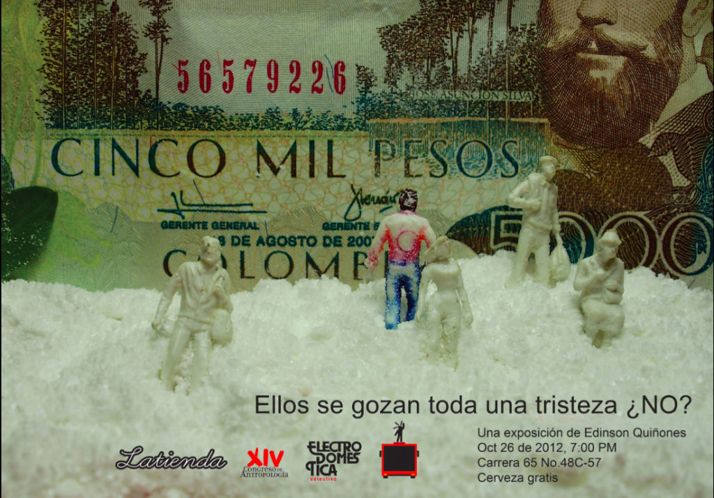 Exposición de fotografía, video y performance, donde el artista ampliaba la muestra que presentó inicialmente en LAtiendaMedellín, bajo el nombre Ellos se gozan toda una tristeza ¿No? En esta ocasión, desarrolló una serie de estrategias para indagar sobre un fenómeno comercial, minimizar su intervención artística y recuperar la mayor cantidad posible de información. _________________ Criminal Arte …