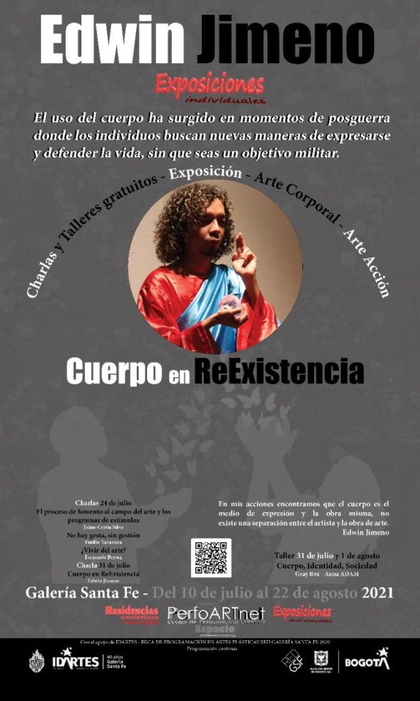 Conversación con Edwin Jimeno, sobre el desarrollo de su obra y, sobre todo, su retrospectiva Cuerpo en Re-existencia, curada por Fernando Pertúz en el marco de PerfoArtNet 2020-2021. Galería Santa Fe, 10 de julio – 22 de agosto. Mayor información: https://www.linkedin.com/in/edwin-jimeno-298875116/?originalSubdomain=co http://exposiciones-individuales.perfoartnet.org/Edwin-Jimeno-2020-PerfoArtNet.html