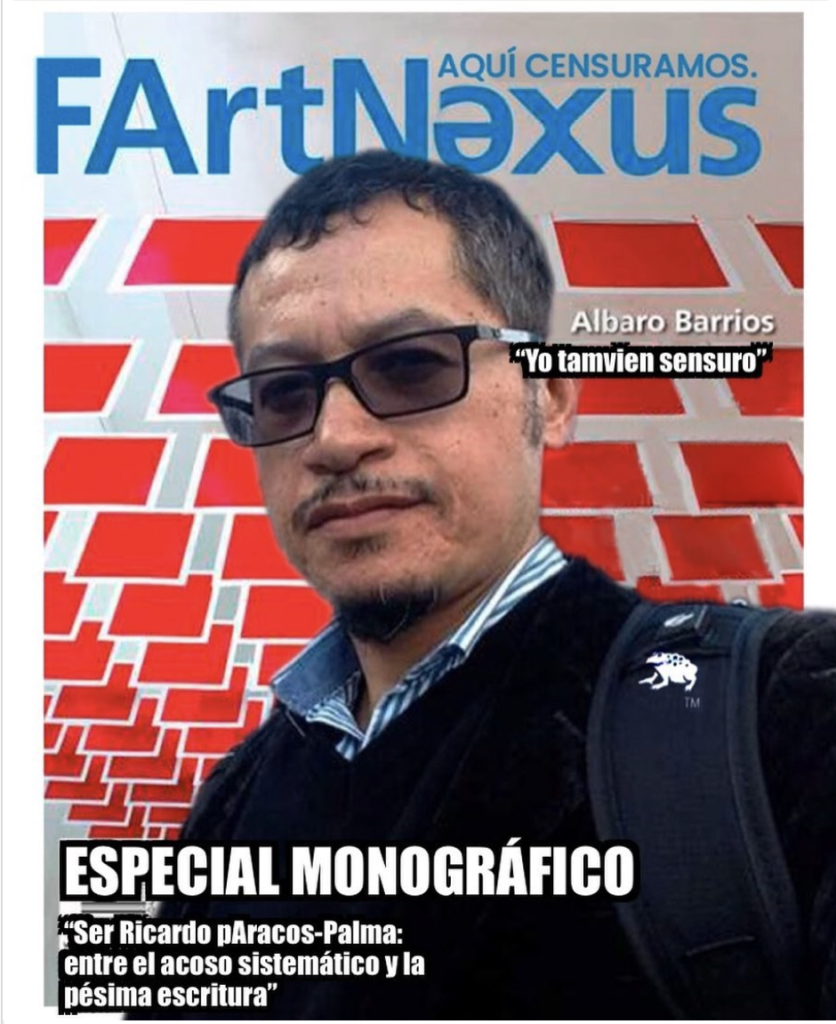 Para quienes desean saber cuál es el collage que quieren censurar @artnexuscorp y el artista del collage, @alvarobarriosvasquez, se trata de esta imagen, publicada el 22 de noviembre de este año, luego de saberse que el dúo de (pésimos) historiadores de arte y a-críticos, Ricardo pAracos-Palma y Mandaría Mercedes Herrera perdieron la extorsión que habían intentado contra @espacioeldorado …