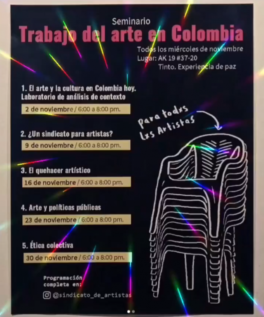 Estas son algunas fotografías* derivadas del seminario Trabajo del Arte en Colombia llevado a cabo todos los miércoles del mes de noviembre. *Cortesía: Sindicato de artistas.
