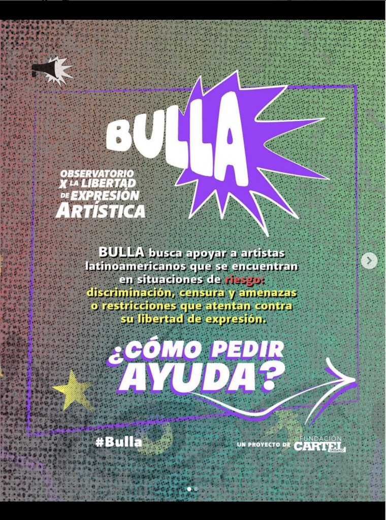 ¿Qué debo hacer si me censuran, amenazan o atentan de cualquier forma contra mi libertad de expresión artística? Acá le dejamos un paso a paso a través del cual puede pedir ayuda si se encuentra en riesgo 👀 Bulla es un observatorio de libertad de expresión artística en Latinoamérica y el Caribe. Si quiere …