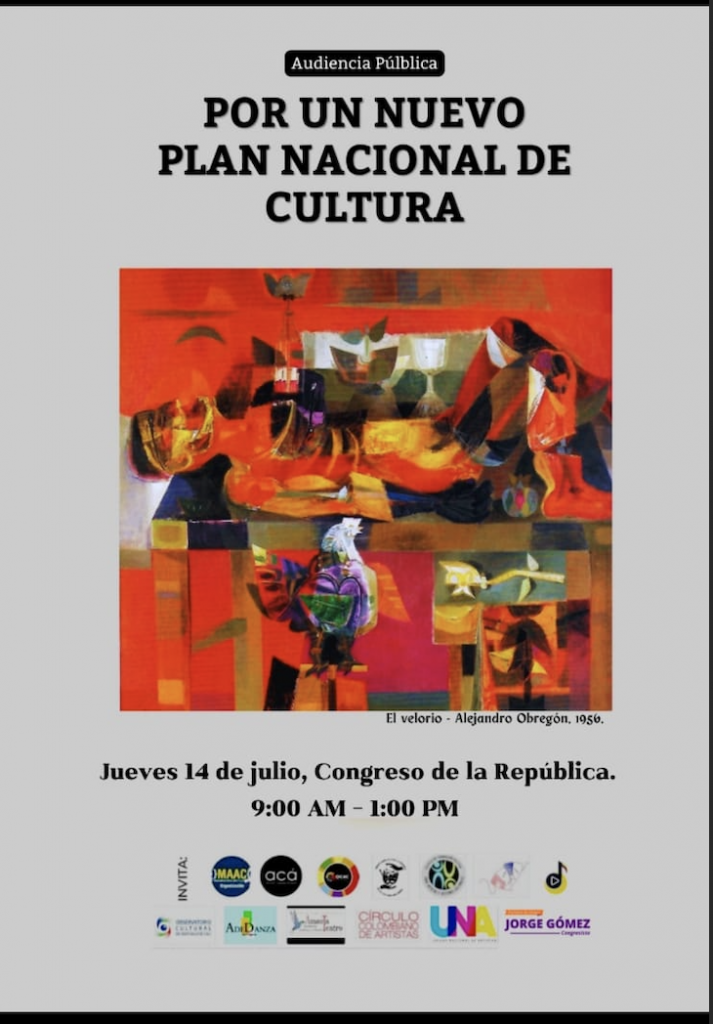 La Mesa Amplia por el Arte (MAAC) y la Cultura, la Asociación de Actores Colombianos (ACA), la Unidad Nacional de Artistas (UNA), entre otras organizaciones y sindicatos de trabajadores y trabajadoras de la cultura, invitan a la audiencia pública en el congreso de la república para debatir sobre el nuevo plan nacional de cultura, …