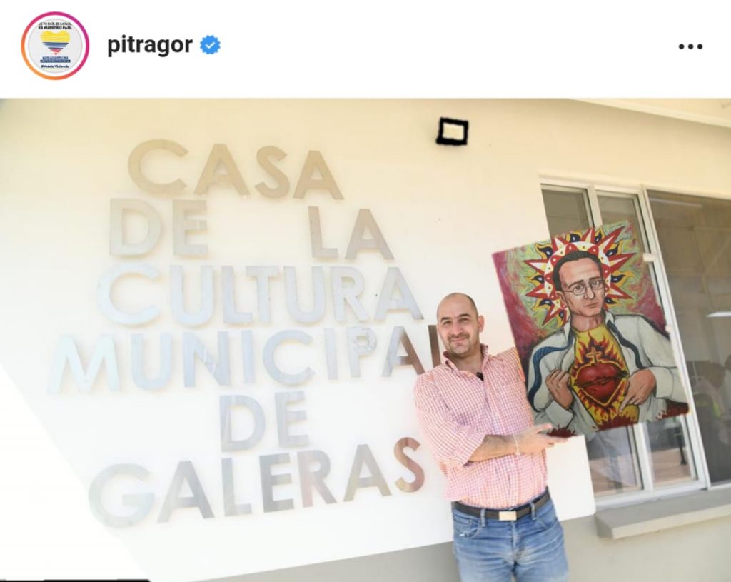Nada nuevo. Se dice que la chuspa que porta Ricardo Arcos-Palma (patrón de la Coalición de Trabajadores de la Cultura de Colombia y autorepresentante del sector artístico en el Comité Nacional del Paro), está repleta de retratos como éste, donde no pierde oportunidad de mostrar a su amigo íntimo, Felipe Buitrago.
