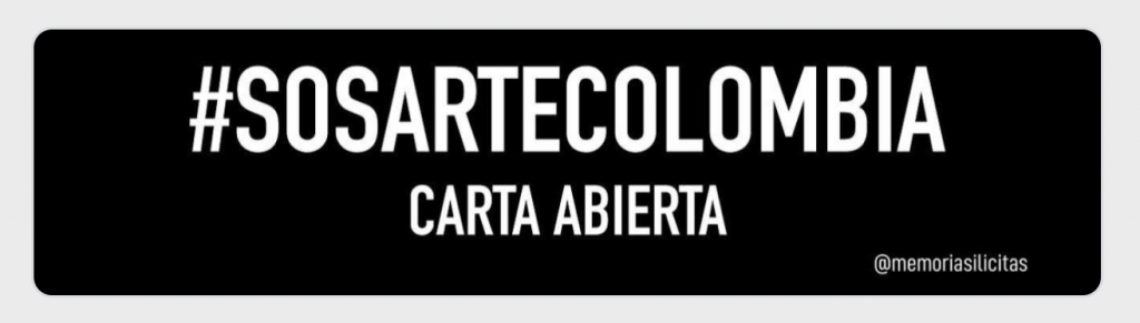 A partir del recrudecimiento de las tensiones del gobierno colombiano contra los manifestantes del Paro Nacional, un grupo de artistas, curadores e historiadores de arte agrupados bajo el nombre @memoriasilicitas, redactó la siguiente carta abierta para ser firmada por quienes deseen expresar su apoyo a la movilización: SOS ARTE COLOMBIA FIRMAR Y DIVULGAR CARTA ABIERTA …