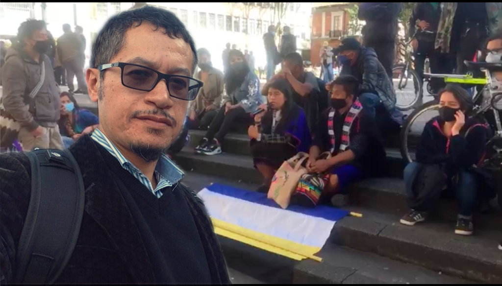 Ricardo Arcos-Palma, dueño de la Coalición de Trabajadores de la Cultura y representante de Felipe Buitrago en el Comité Nacional del Paro infiltra otra manifestación.