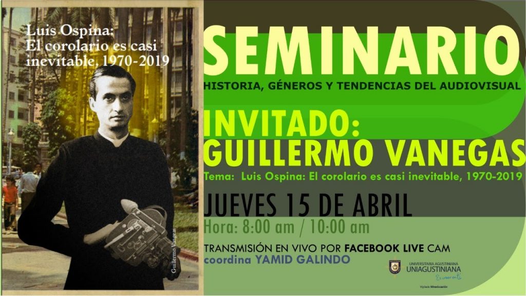 Diálogo entre Yamid Galindo, estudiantes de la Universidad Agustiniana y Guillermo Vanegas, alrededor de la exposición Luis Ospina: El corolario es casi inevitable, 1970-2019. Seminario Historia, géneros y tendencias del audiovisual (jueves 15 de abril de 2021). Mayor información: https://reemplaz0.org/luis-ospina-el-corolario-es-casi-inevitable-1970-2019/
