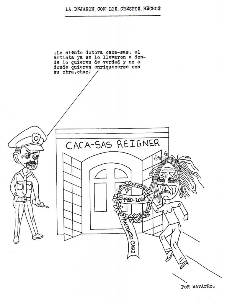 Iván Navarro por fin nos devela el secreto tras la reculada de Ca-casas Reigner y su macabro, oportunista y redituabilísimo plan de exhibir el cadáver de Antonio Caro en la propia galería.