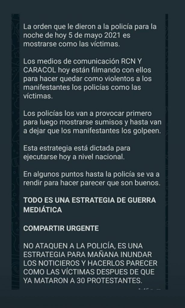 Por favor difundan el mensaje y que el mundo lo sepa. Esta madrugada el ejercito y la policía masacraron jóvenes que resistían en las calles de Cali, Colombia.
