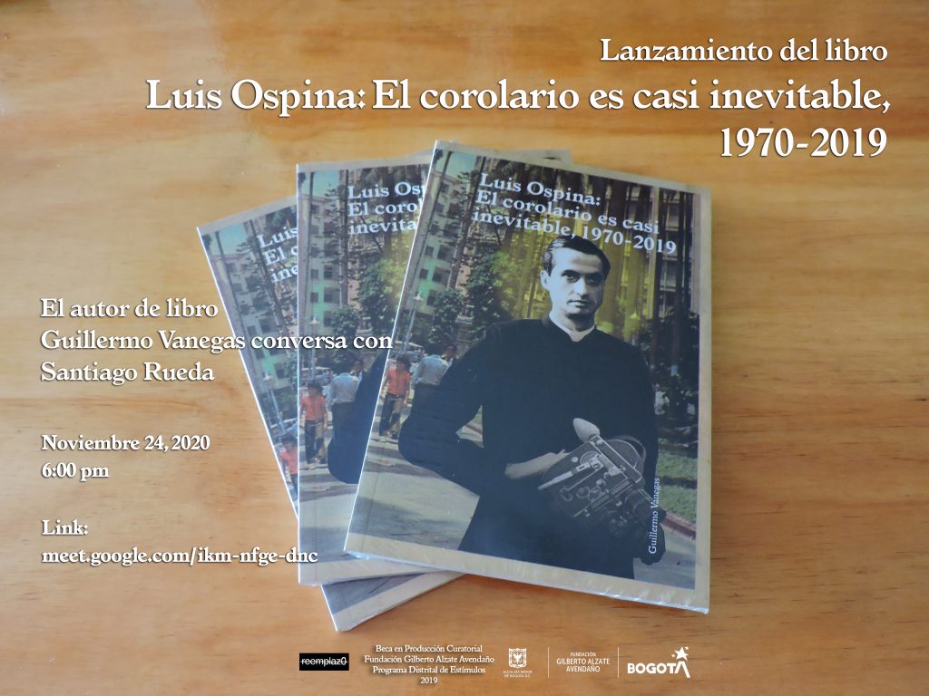 El 24 de noviembre de este primer pandémico año, desde las 6 p.m., el historiador de arte Santiago Rueda coordinará la presentación del libro «Luis Ospina: El corolario es casi inevitable, 1970-2019», derivado de la investigación curatorial homónima, realizada por el crítico y curador, Guillermo Vanegas. ¡Les esperamos en el siguiente link!: meet.google.com/ikm-nfge-dnc