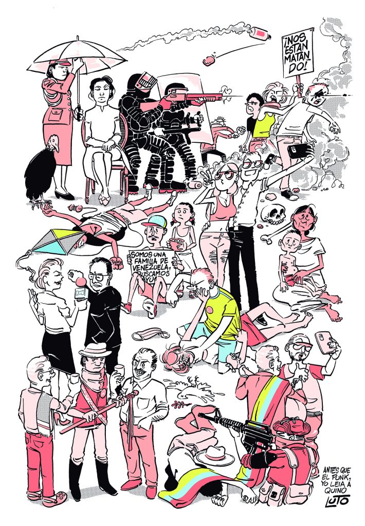 «Una de mis piezas favoritas de Quino es esta que he reinterpretado para ilustrar la critica epoca que vive el país. Puto Uribismo y larga vida a Joaquin Lavado» Luto