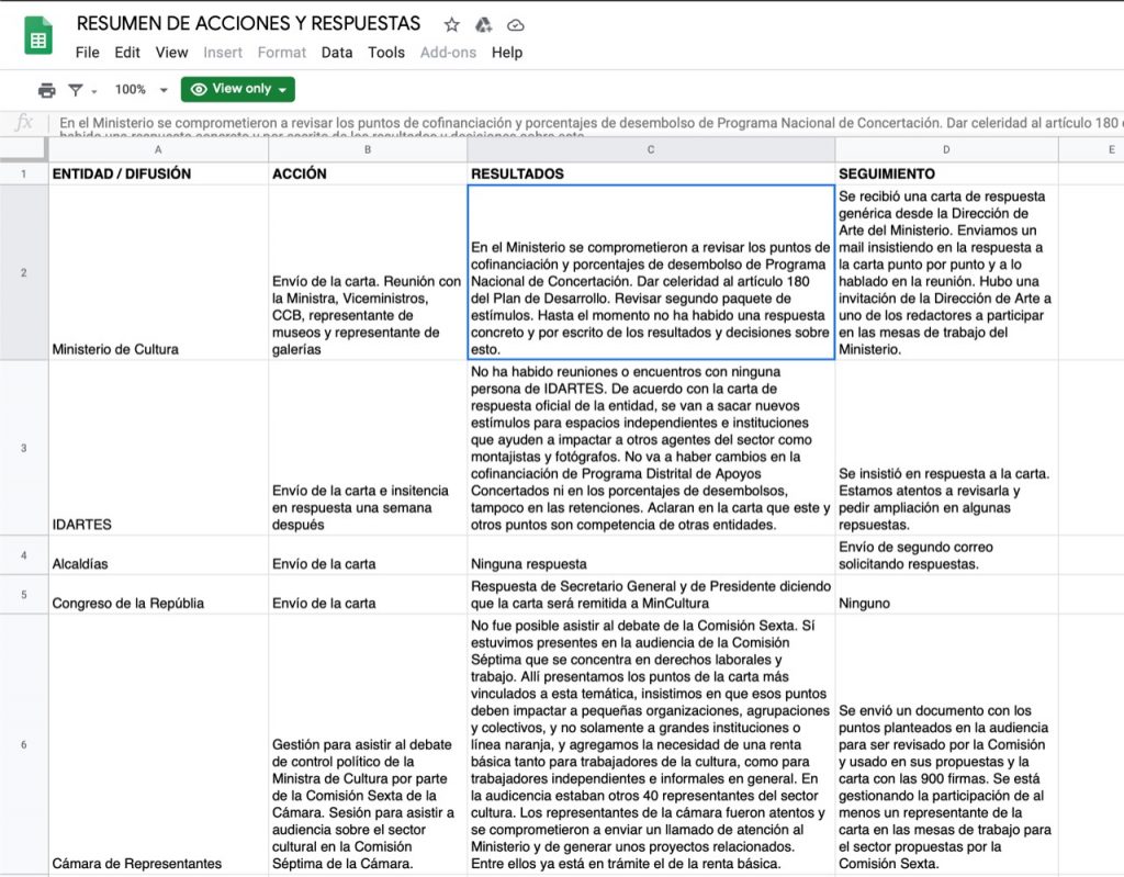 El 20 de abril, un grupo de trabajadores independientes de las artes plásticas y visuales compartimos una carta abierta dirigida al gobierno nacional, entidades locales e instituciones culturales. Hoy, además de agradecer a quienes nos apoyaron firmando y difundiendo, queremos compartir este enlace donde encontrarán información que da cuenta de todo lo que ha pasado …