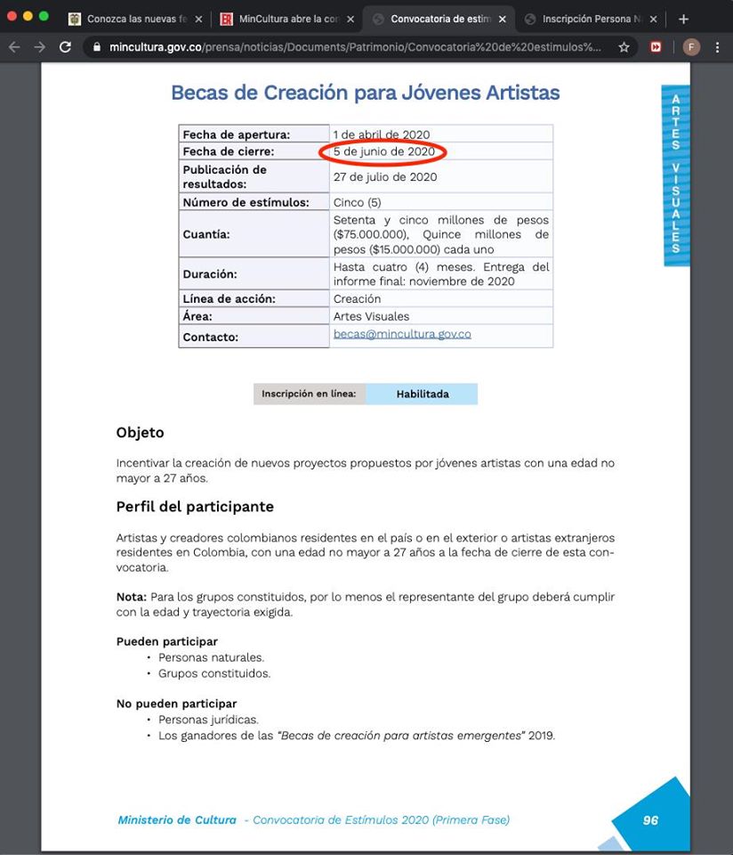 Felipe Lozano publica su inconformidad con el abusivo cambio de fechas de cierre en la convocatoria «Becas de creación para jóvenes artistas», del Programa Nacional de (des)Estímulos del Ministerio de Cultura. A continuación su denuncia: Debido a los inconvenientes internos presentados por parte del Ministerio de Cultura frente a las fechas de cierre de la …