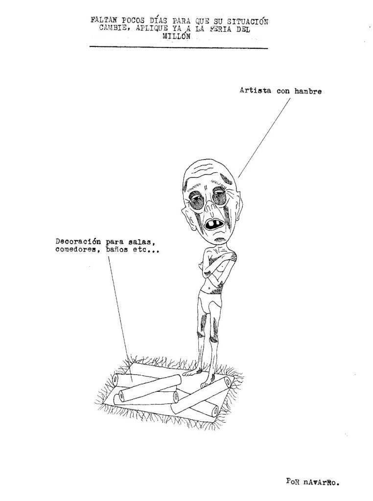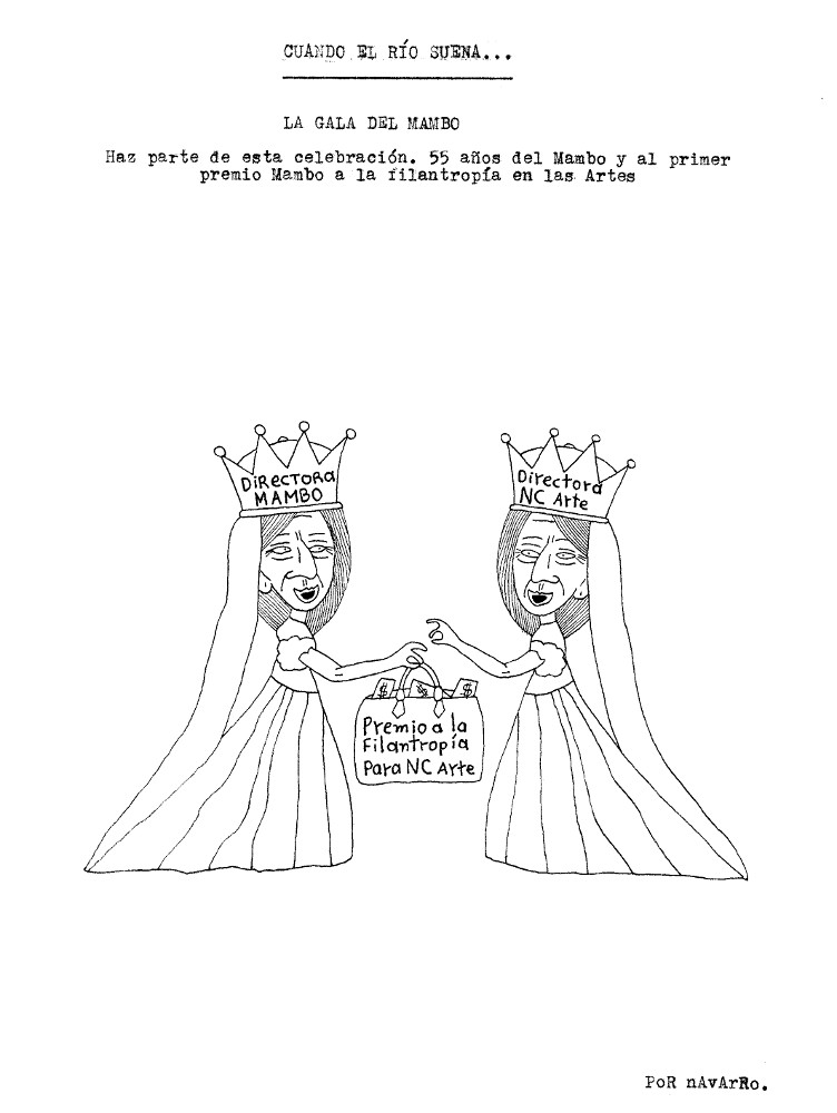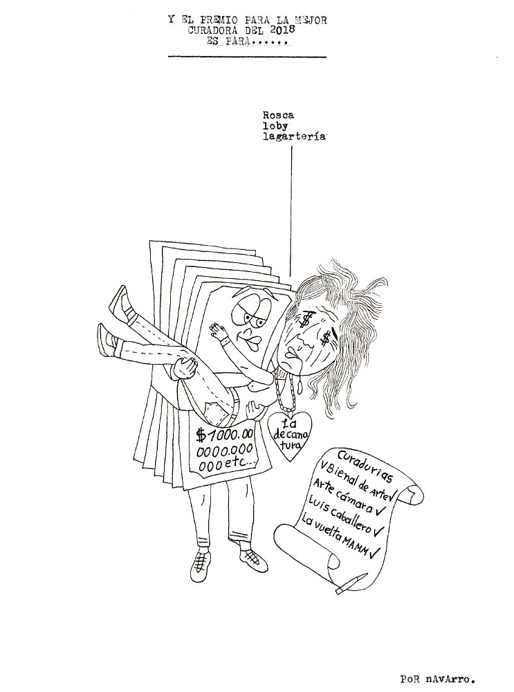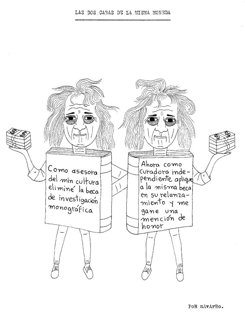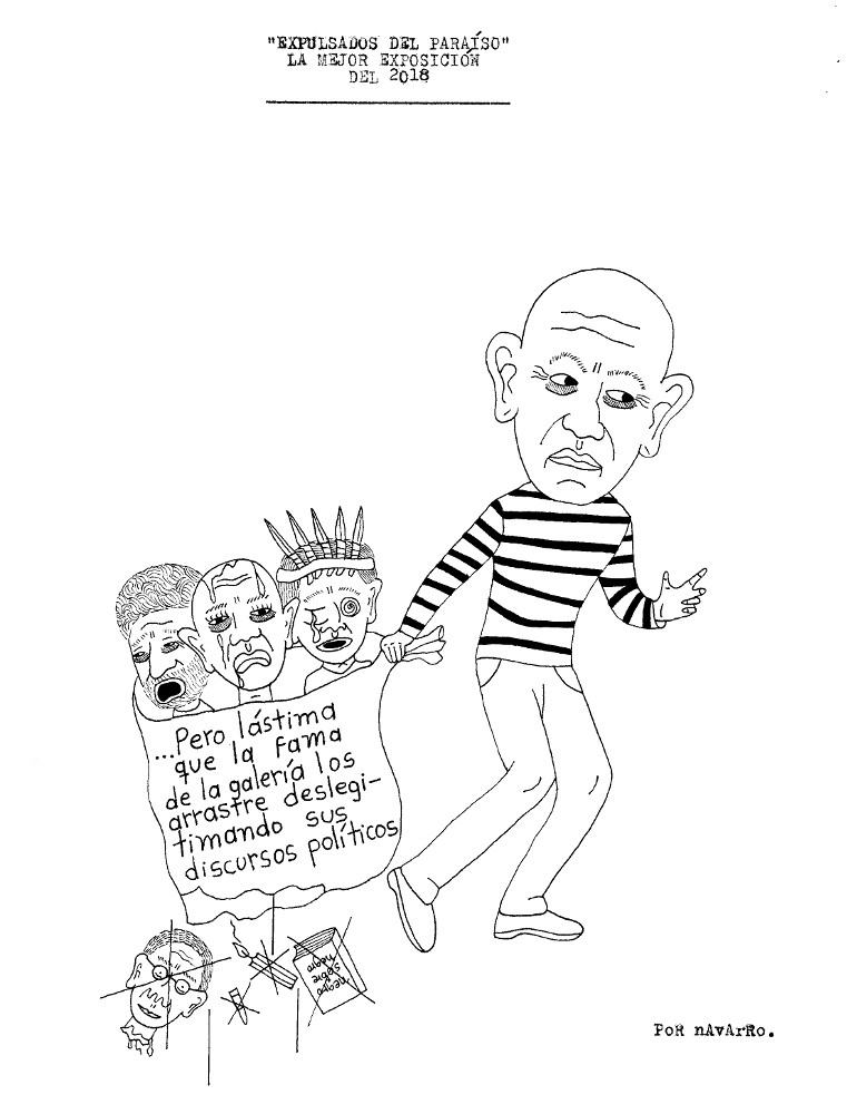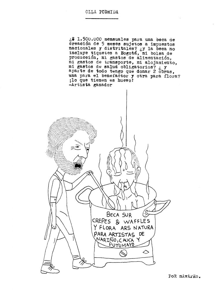 Durante la semana pasada, Iván Navarro desarrolló un performance: mandó imprimir sobre hoodies negros varias caricaturas críticas suyas sobre la Feria de arte de Bogotá, vendió algunas y se guardó otra para sí mismo. Como estaba trabajando semi-contratado por una galería, aprovechó para deambular libremente por el galpón donde se realizaba el evento y …