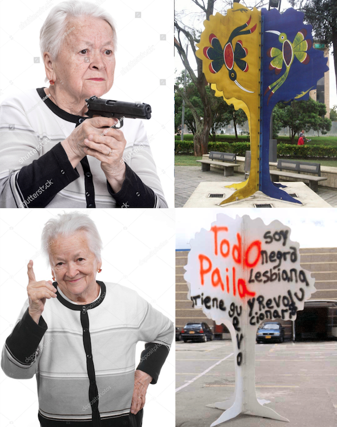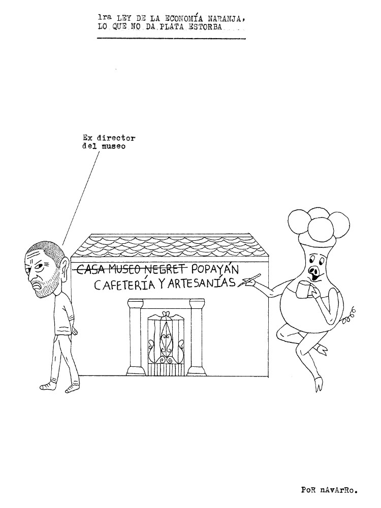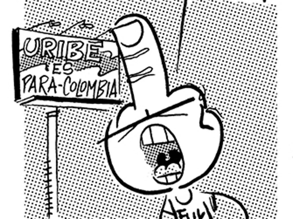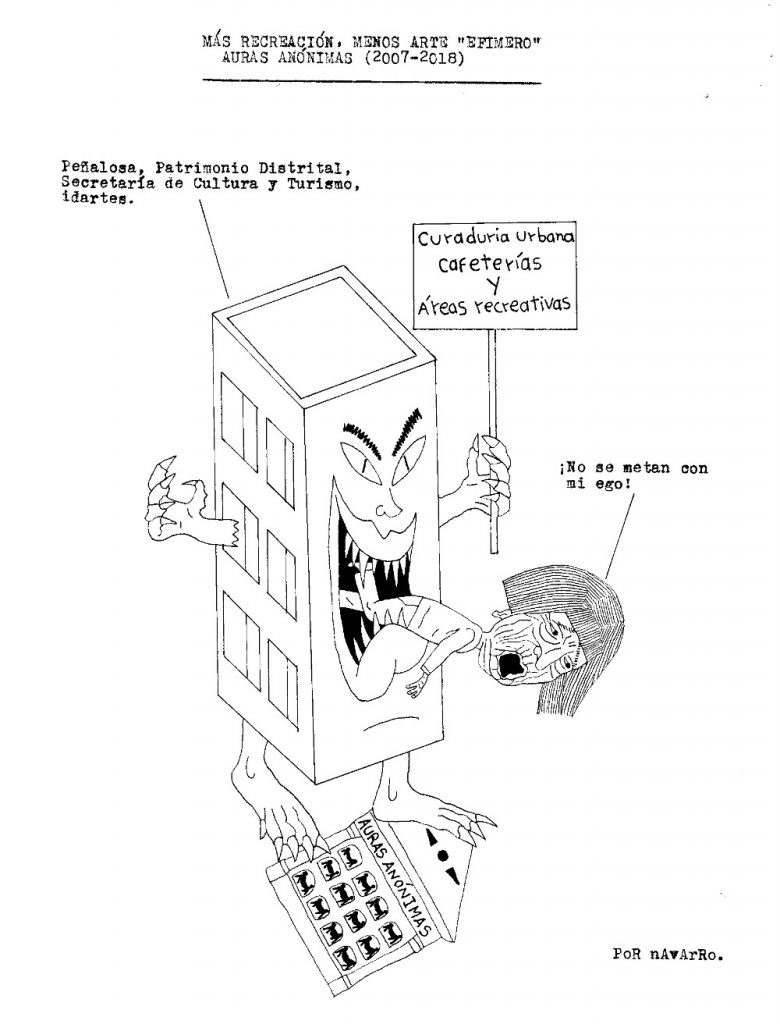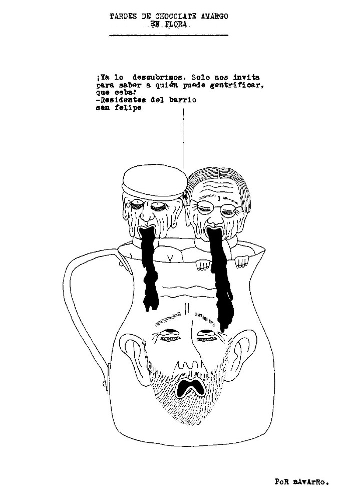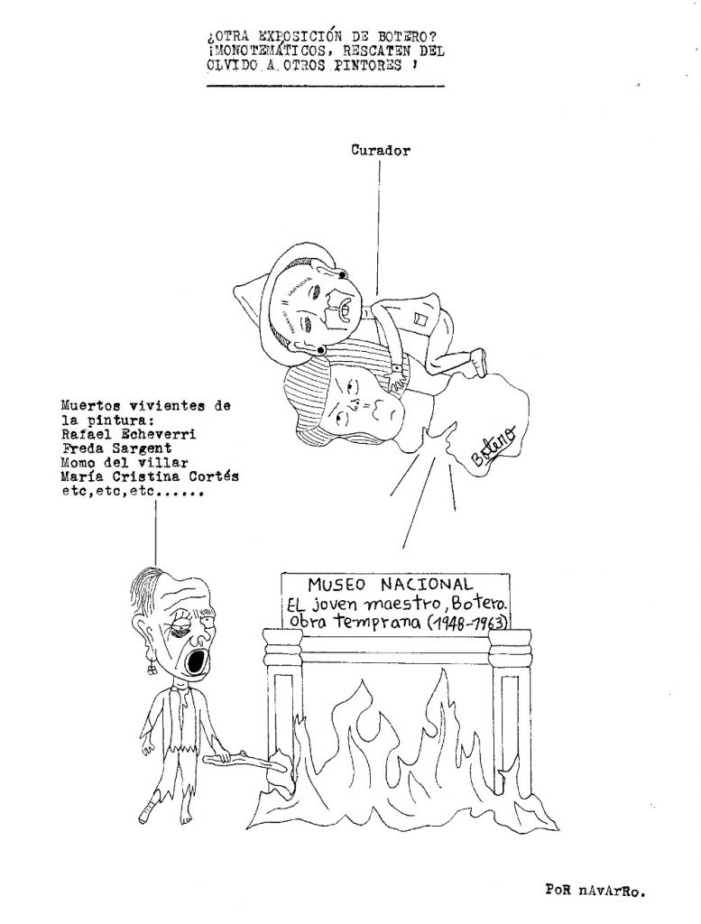Durante la semana pasada, Iván Navarro desarrolló un performance: mandó imprimir sobre hoodies negros varias caricaturas críticas suyas sobre la Feria de arte de Bogotá, vendió algunas y se guardó otra para sí mismo. Como estaba trabajando semi-contratado por una galería, aprovechó para deambular libremente por el galpón donde se realizaba el evento y …