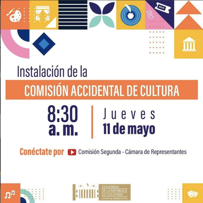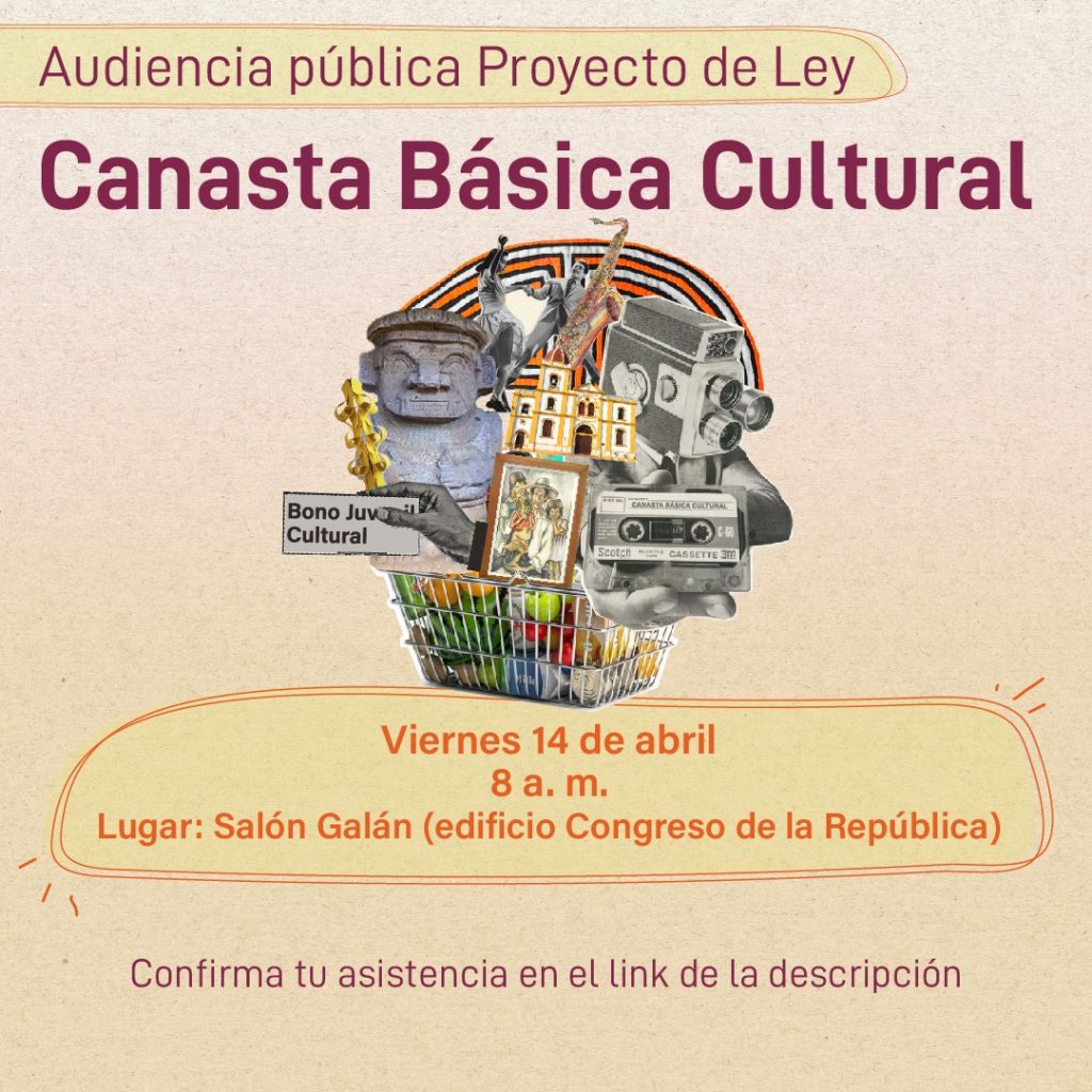 El proyecto de ley de Canasta Básica Cultural fue aprobado en su primer debate, en Comisión Sexta de Cámara. Para mejorar su contenido antes de que continúe el ciclo legislativo se llevará a cabo una audiencia pública en el Salón Galán del Congreso de la República. Fecha: viernes 14 de abril Lugar: Salón Galán, Congreso …