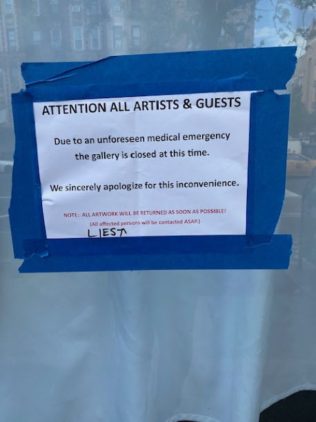 El reporte es del 19 de abril: en Nueva York, emprendedor naranja decidió montar chuzo para mostrar arte pendejo, armar eventos ficticios y robar artistas. Por supuesto, nadie lo ha demandado. Galería East Village hace una no-exposición dejando a los artistas sin su trabajo desde la noche misma de apertura* ** Tomado de: EV …