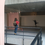 Tiempo atrás, la artista había ensayado poner en tensión estructural un objeto parecido. Lo hizo en Odeón, en la muestra Defectos lineales o dislocaciones. Sin embargo, en esa oportunidad la obra se suspendía por uno de los vacíos del espacio anfitrión poniéndose en peligro de manera más evidente. La hipótesis que contrariaría los ideales de conservación tradicionales, era delimitada allí como otro potencial mucho más literal, mucho más agresivo: y ¿qué sucedería si la obra cayese sobre une espectadore descuidade en-el-momento-menos-pensado? ¿Sucedería una tragedia? ¿Se asfixiaría en pintura?