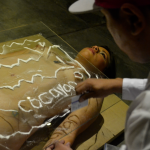 Coronamos, significa en el argot popular colombiano que se logró el objetivo, esto en términos del fenómeno narco significa que el cargamento llegó sano y salvo, que el asesinato se logró satisfactoriamente, etc… esta palabra está encargada de nombrar todos los sentidos alrededor de la muerte, es una mezcla de símbolos que buscan dar estatus y legitimar la violencia a toda costa; este proyecto señala la arquitectura narco, como el lugar ostentoso, exagerado, desproporcionado de la estética de la apariencia, el ornamento y el delito, que desde niño me tocó ver en el barrio y en el cual crecí, esta imagen es tomada de la casa de mi padre, que siendo profesor vio en estas construcciones un reconocimiento social que se da solo a través del dinero y el ornamento y el cual la mayoría de colombianos buscamos como la fuente de la felicidad.