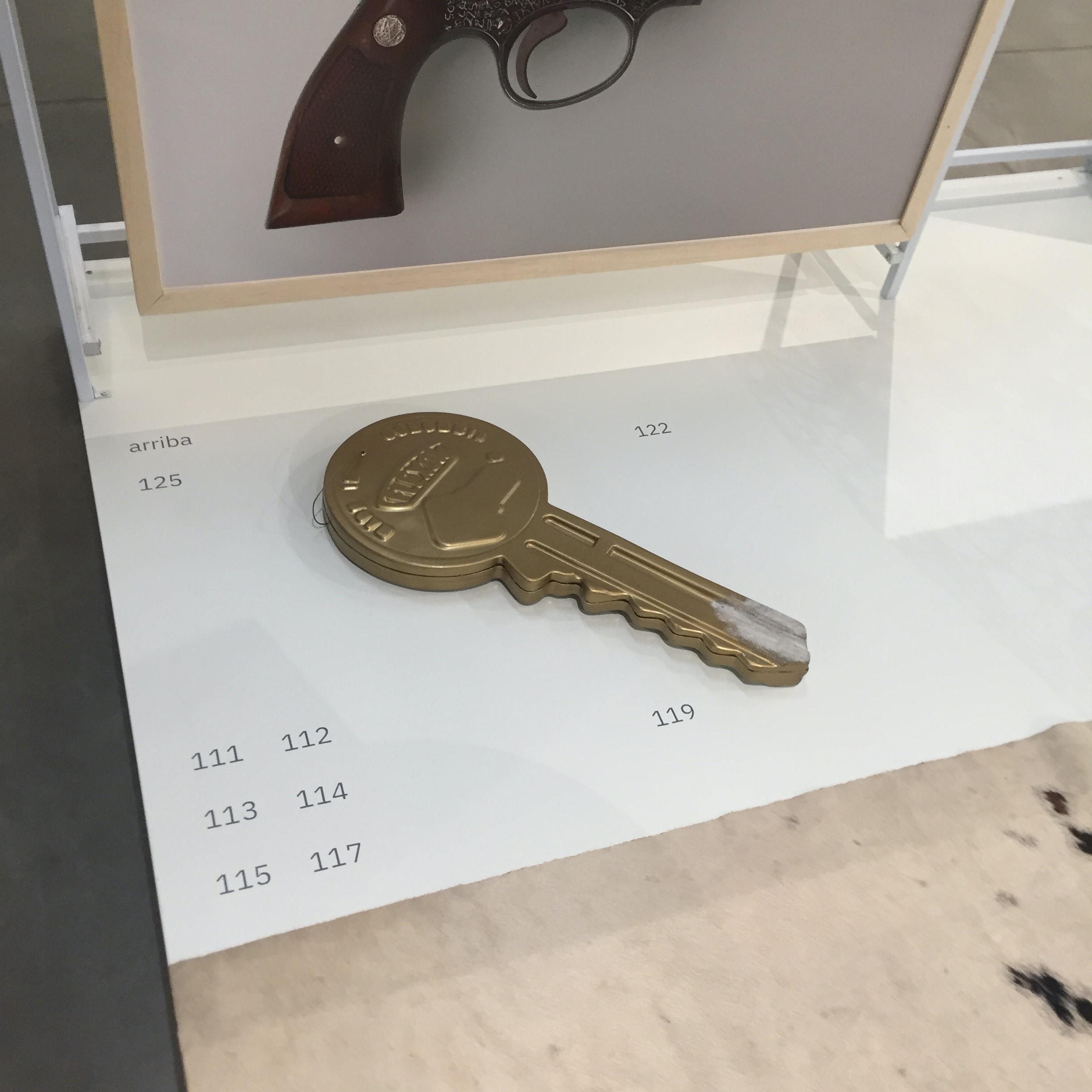 Sin embargo, la investigación de esta muestra se aleja de esas vías. Por el contrario, propone que en su inventario de piezas de brillo adicionado —o brillantes por completo—, elaboradas a partir de materiales exóticos —o involucrando una plétora de sus más burdas imitaciones—, rodeadas de una adoración por las armas —o su representación como forma de imposición de respetabilidad—, y apelando a la ignorancia deliberada de las condiciones materiales de su producción de riqueza, más que hablar de traquetismo galopante, piensa en los efectos de ese fenómeno o sus repercusiones.