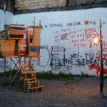 La casa del patio tiene una ventana. La estructura circular que montaron el año anterior tenía una ventana. Muchas de las construcciones que hacen para dejar abandonadas en la calle tienen ventanas. Para ver de dentro hacia fuera, tomar imágenes y luego, cuando ya no estén, alguien se asome por ellas y decida si las habita o desmantela.