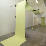 Primero hizo el trabajo del espacio. Verlo, ver todo lo que no es “cubo blanco” y categorizarlo (es decir, volverlo cubo gris, que no es precisamente algo mejor). Luego hizo su trabajo de artista, idear las esculturas, como sea que ella opere, y luego, también juiciosamente, fue a comprar materiales nuevos para hacer un comentario sobre el edificio. Es esto lo que disloca, justamente, el sentido de las esculturas, las vacía, las seca. Son piezas faltas de vida en ese huracán de tiempo que es el edificio. Sin embargo, hay piezas bellas, por no decir más. Y, otro comentario a manera de halago: revivieron para mí los tubos verdes del techo, a pesar del amague. Este, contrastado con el gesto de Roldán, es más una tregua que una imposición.