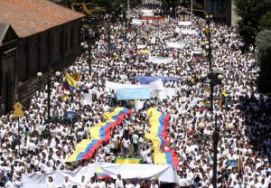 BOGOTA(COLOMBIA,4,FEBERERO,2008) MARCHA EN CONTRA DE LAS FARC Y POR LA LIBERACION DE TODOS LOS QUE TIENEN SECUESTRADOS.AVENIDA JIMENEZ CON 7.FOTO.FELIPE CAICEDO EL TIEMPO DIGITAL