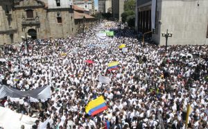 BOGOTA(COLOMBIA,4,FEBERERO,2008) MARCHA EN CONTRA DE LAS FARC Y POR LA LIBERACION DE TODOS LOS QUE TIENEN SECUESTRADOS.AVENIDA JIMENEZ CON 7.FOTO.FELIPE CAICEDO EL TIEMPO DIGITAL